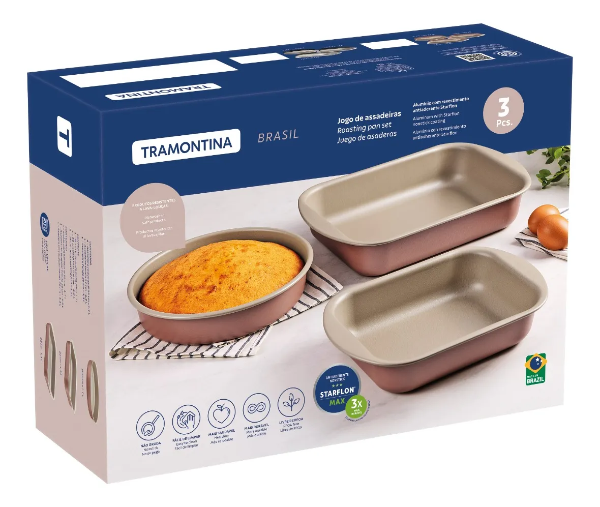 O jogo de assadeiras Tramontina Starflon Max em alumínio é ideal para quem busca praticidade e qualidade na cozinha. Com três peças, ele facilita o preparo de diferentes receitas, garantindo cozimento uniforme e sem grudar.